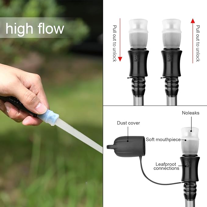 - Auto-lock mouth:Hydration pack bladder with ON/OFF valve.Auto-shutoff valve prevents leaking when the tube is detached.