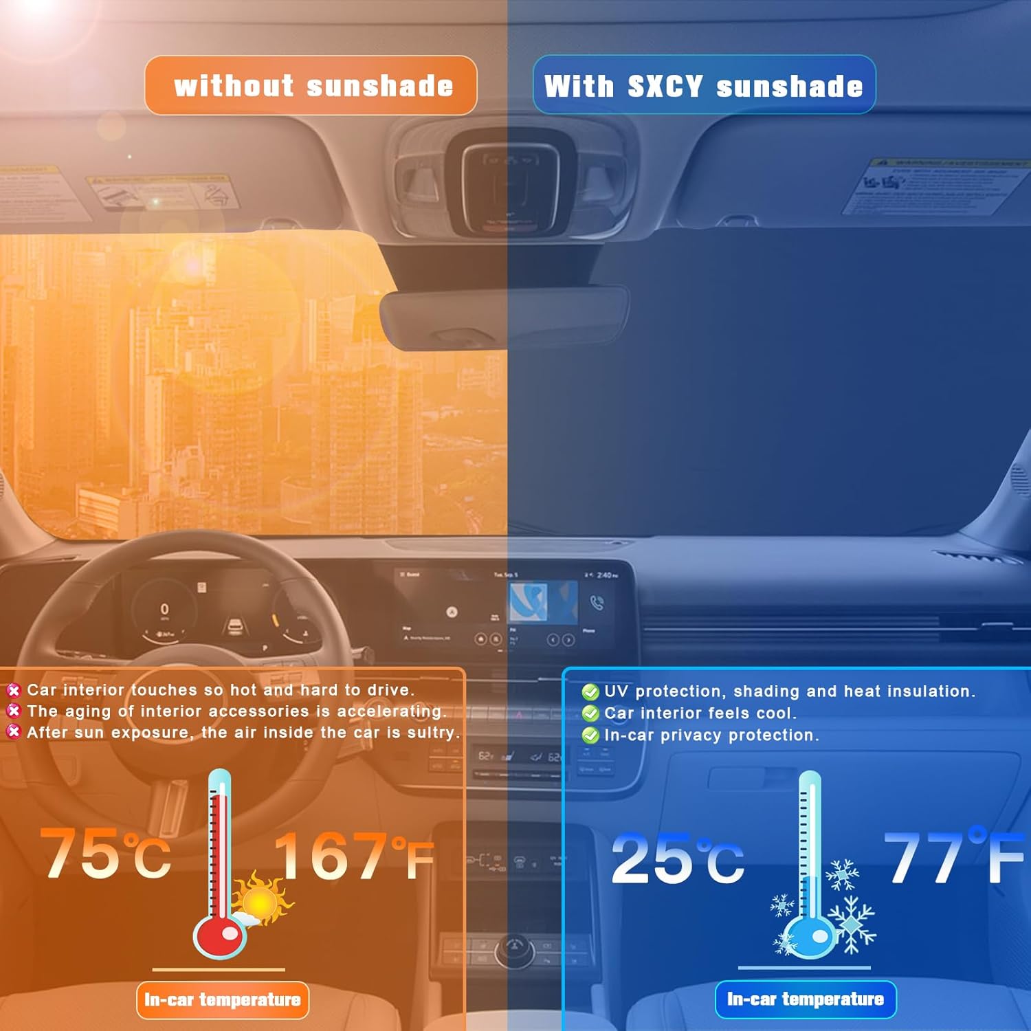 SXCY for 2024 2025 Hyundai Kona Windshield Sunshade for 2024 2025 Hyundai Kona SE SEL N-line Limited Accessories 2024 2025 Kona Sun Shade Foldable Sun Shield 2025 Kona Sunshade 2024 Kona Sun Protector