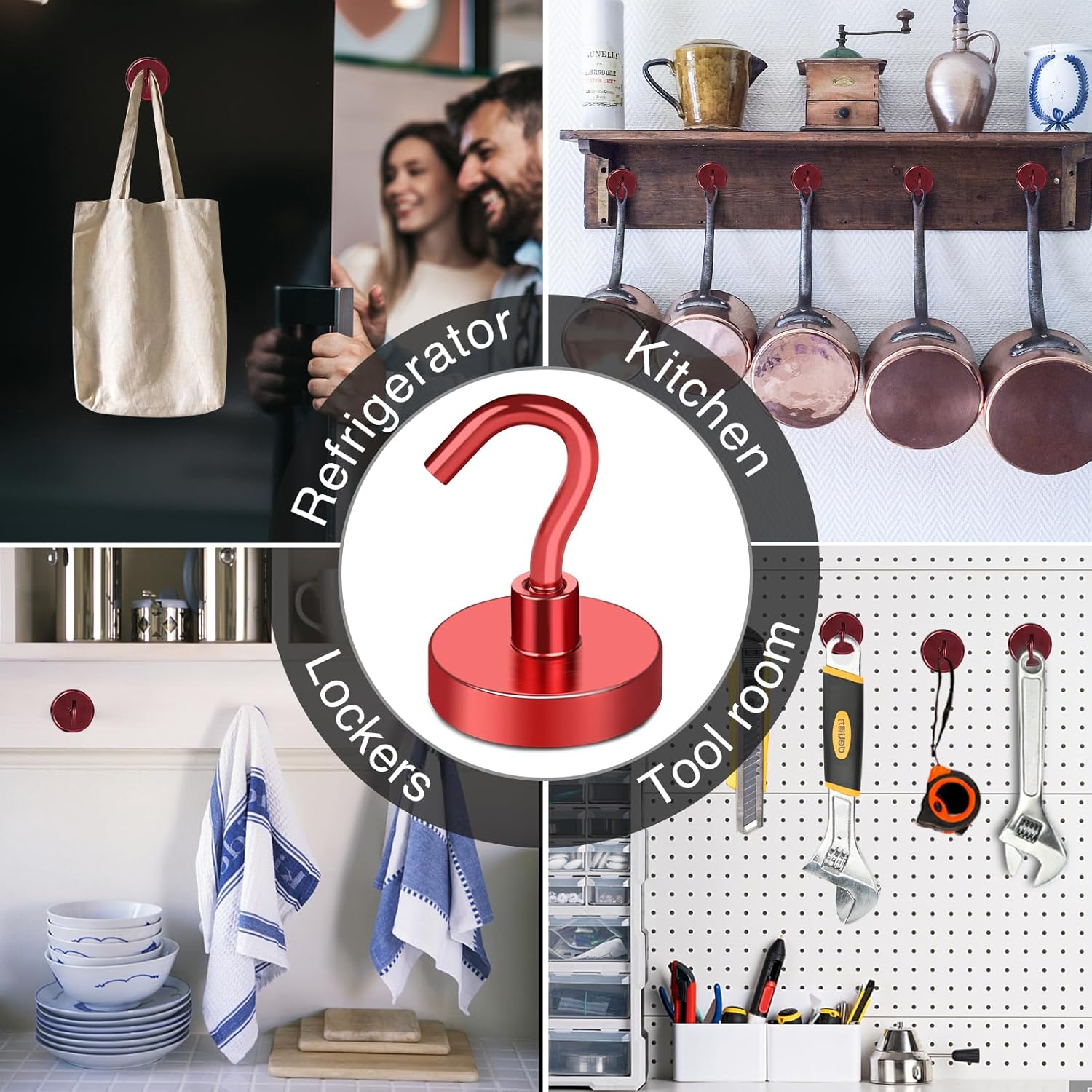 - 【Excellent Layer Coating】- Our metal magnetic hooks come with an excellent triple-layer coating of Ni+Cu+Ni, which greatly reinforces their corrosion resistance. This coating is the best available, providing a shiny and rust-resistant surface that helps prevent chipping or cracking. The coated steel cup also provides protection for the heavy duty magnetic refrigerator hooks. With this excellent layer coating, you can trust that our magnetic hanging hooks are safe to use and will last a long time.