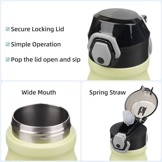 - Equipped with a lockable flip lid and a spring straw, the bottle is leak-proof,left it in your bag without worrying any spills. Simple operation design ensures you Just pop the lid open and sip.Soft silicone spout makes a nice drinking experience.