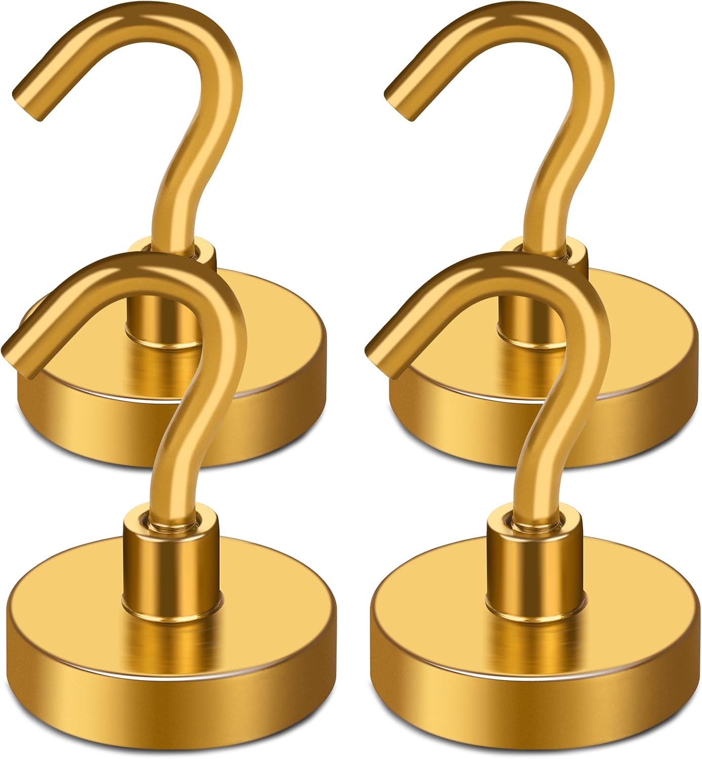 - 【Excellent Layer Coating】- Our metal magnetic hooks come with an excellent triple-layer coating of Ni+Cu+Ni, which greatly reinforces their corrosion resistance. This coating is the best available, providing a shiny and rust-resistant surface that helps prevent chipping or cracking. The coated steel cup also provides protection for the heavy duty magnetic refrigerator hooks. With this excellent layer coating, you can trust that our magnetic hanging hooks are safe to use and will last a long time.