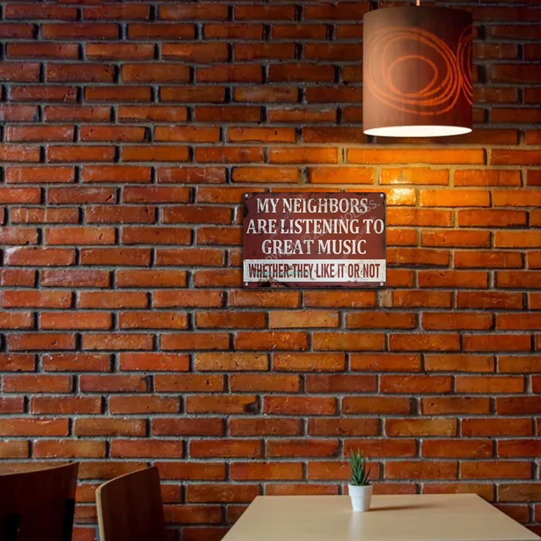 'My Neighbors Are Listening to Great Music' Funny Man Cave Decor for Men | 12x8″ Durable Vintage Metal Man Cave Signs Wall Decorations for Basement/Garage/Mancave/Music Room, 2359