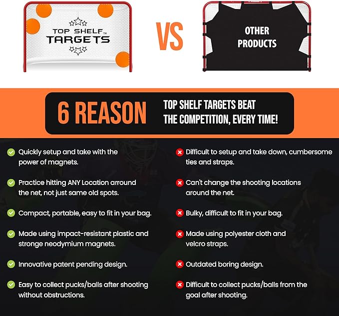 - Easy Magnetic Target Attachment; Our top-notch lacrosse training target has high-powered magnets for easy attachment to lacrosse nets, street hockey nets, ice hockey nets, or sturdy metal frames, so you can improve your skills on any setup