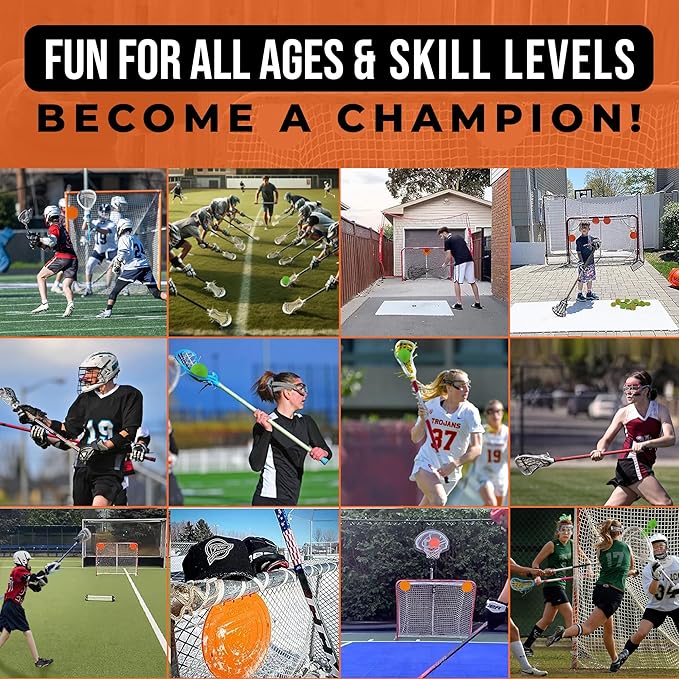- Express Your Scoring Potential; Unleash your inner goal-scorer with our official lacrosse balls and lacrosse/hockey goal targets, providing the perfect setup for shooting practice in driveways, parking lots, streets, basements and tennis courts as you improve your shots, break scoring records, and wow the fans