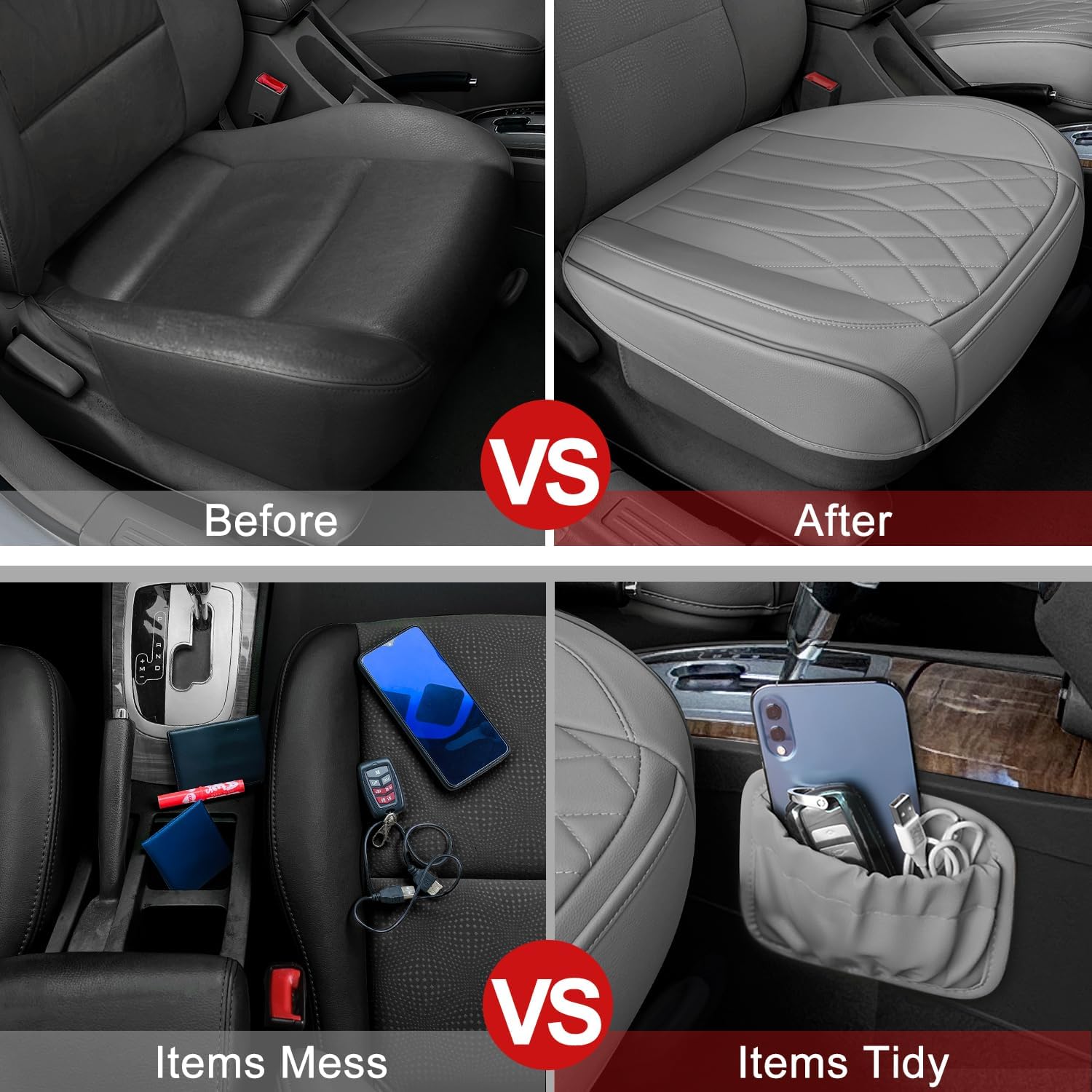 2 Pack Leather Front Car Seat Cover Bottom Car Seat, Universal Anti-Slip Driver Car Seat Protectors with Storage Pocket, Waterproof Bottom Auto Seat Cushion Pad Mat for Most Vehicles(Gray)