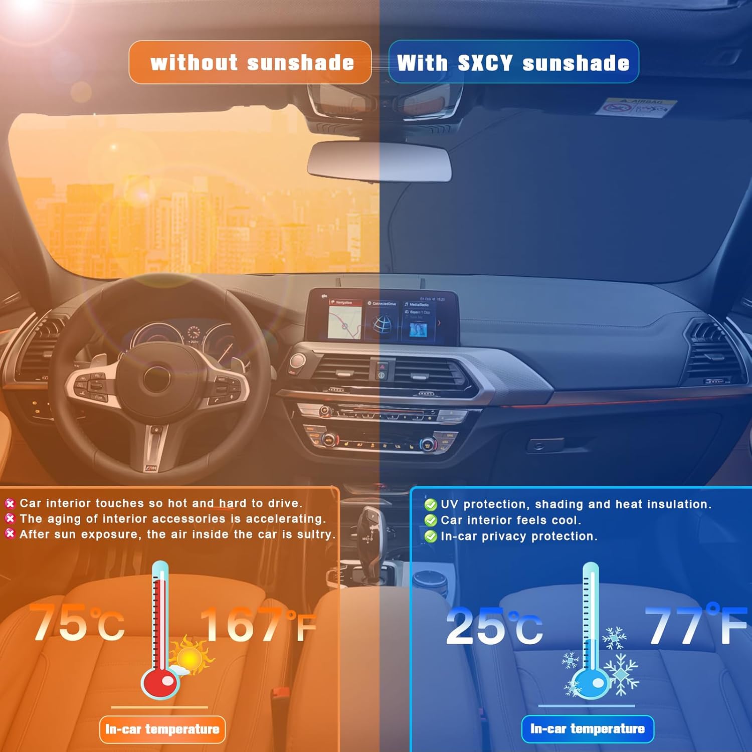 - 2.Sun Protection: Solve your concerns about parking for a long time under the scorching sun,prevent the car's interior from getting sunburned and extend your 2023 2024 X3 interior accessories’life.