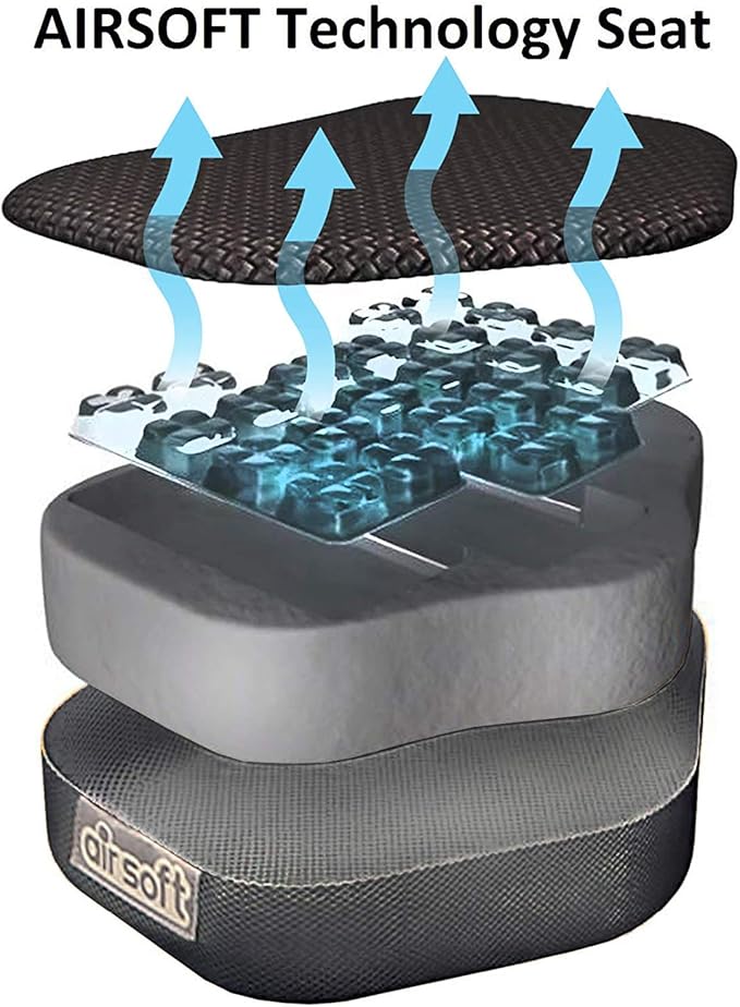 - ULTIMATE COMFORT - Patented Airsoft Seat Cushion with individual air chambers to keep you cool and relieve pressure while working out.