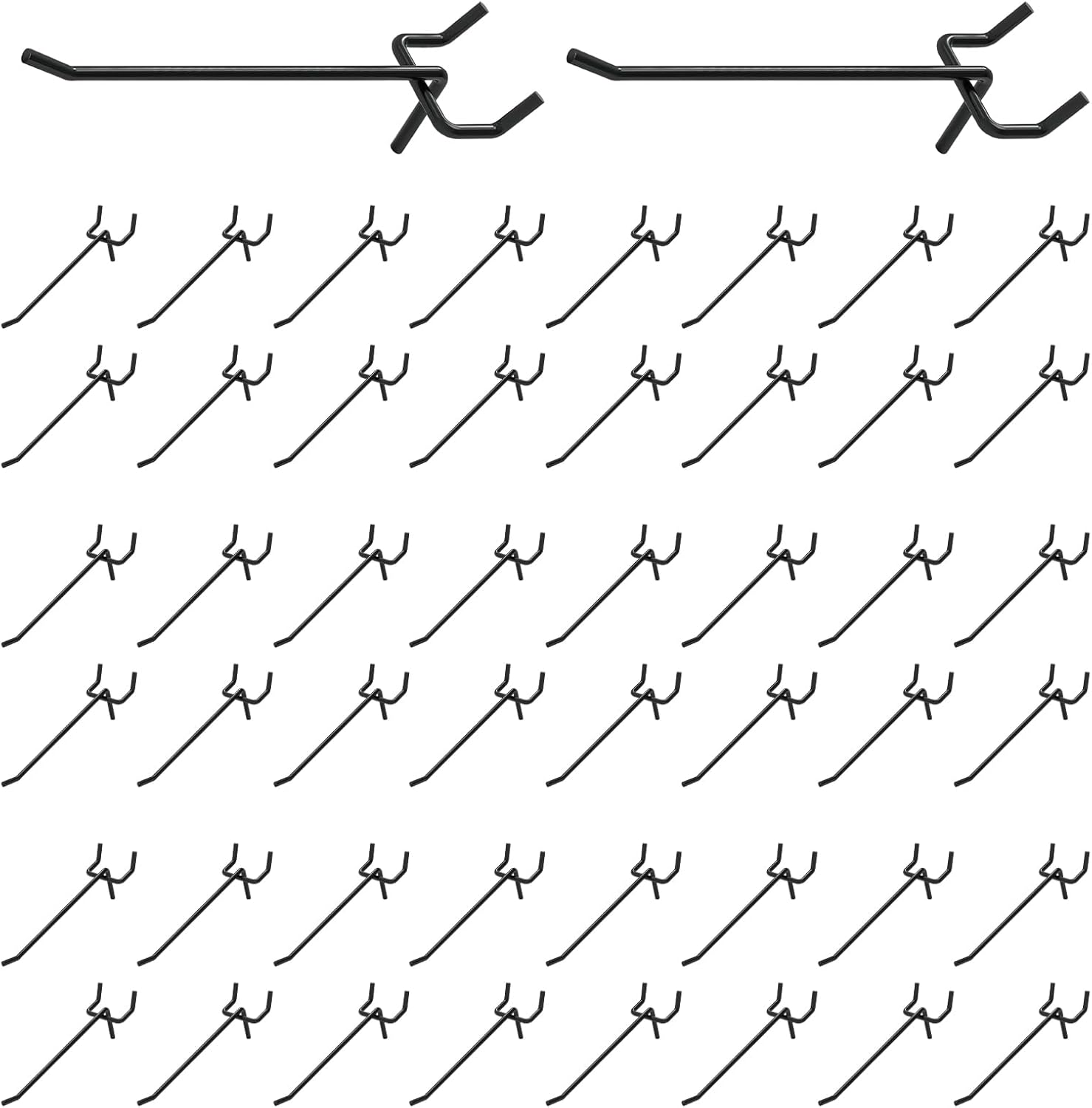 - [50Pcs Peg Board Shelving Hook] You will receive 50pcs 4"/10CM black peg board display hooks. Their thickness is approx. 4 mm/ 0.16 inch. The enough quantity will meet your space planning or replacement needs. Ideal Peg Board Organizer Accessories for Garage Tool Organization.