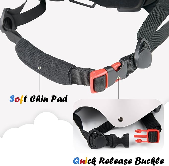 - Fully adjustable, provided by the crank adjustment dial, 2 sets of pads with different thickness, and length-adjustable chin straps