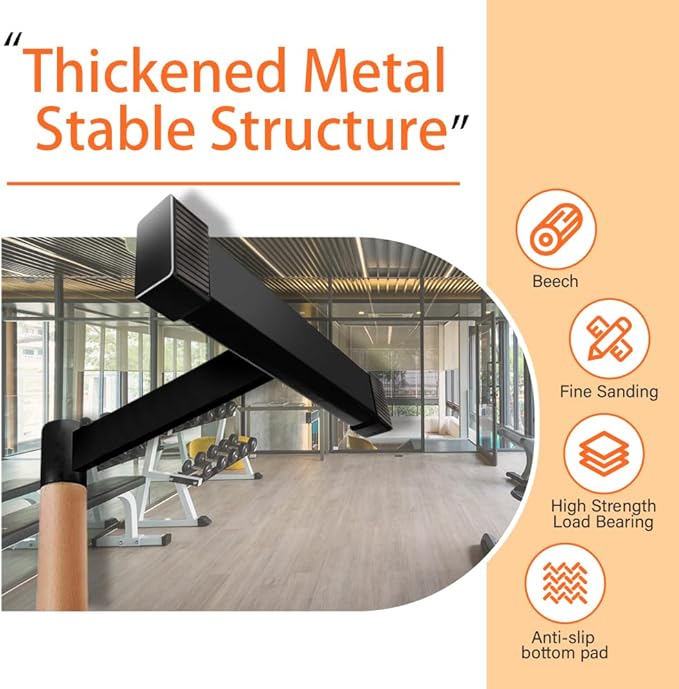 Wooden Parallel Bar and Dip Bar with Thick Beech Handles, Push-up Bar, Rock-Free Fitness Equipment for Handstand, L-Sit, Gymnastics, Strength Training Home Gym,500lbs