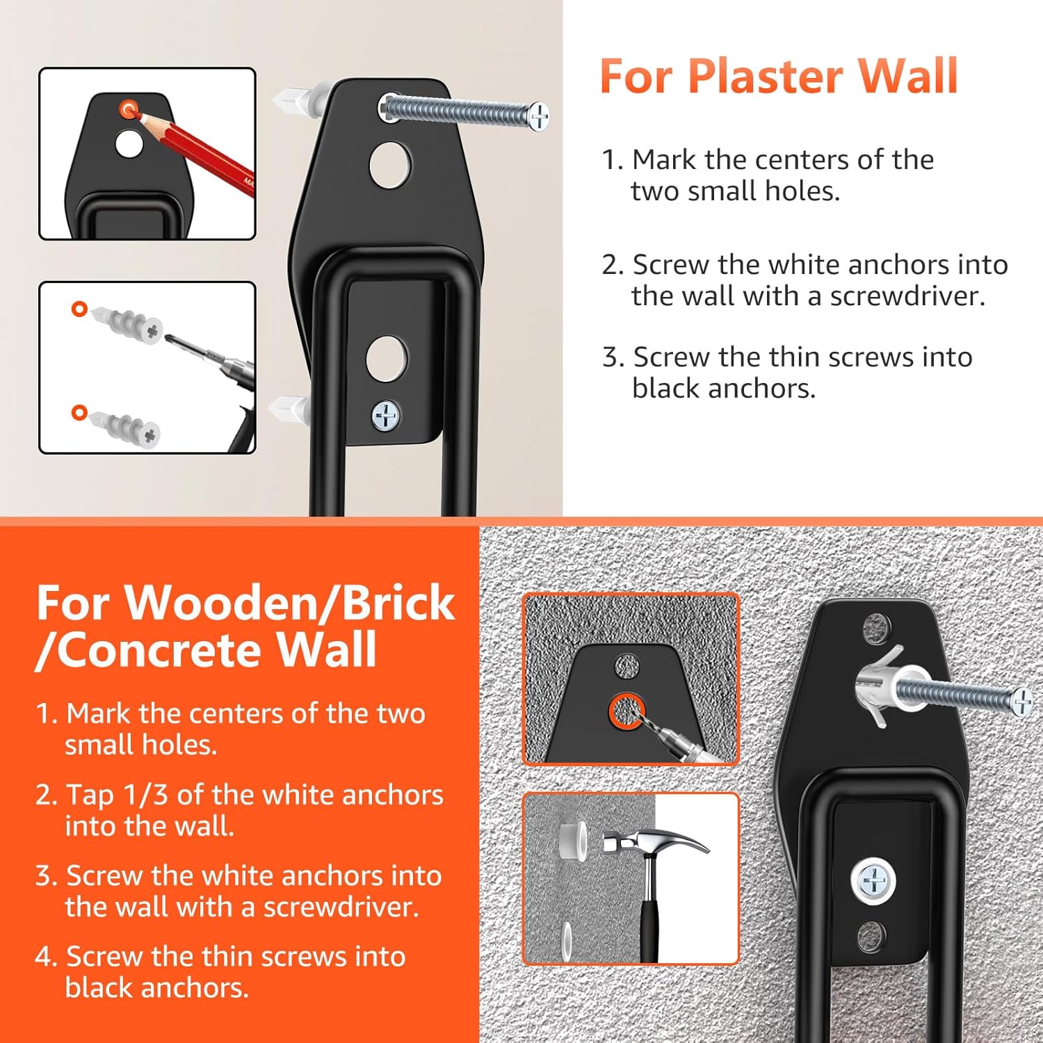 - EASY TO INSTALL:Each set of hooks for hanging is equipped with screws suitable for different materials,and the load-bearing capacity varies depending on the installation material.It can be used to install gypsum,wood,drywall,brick,and concrete walls