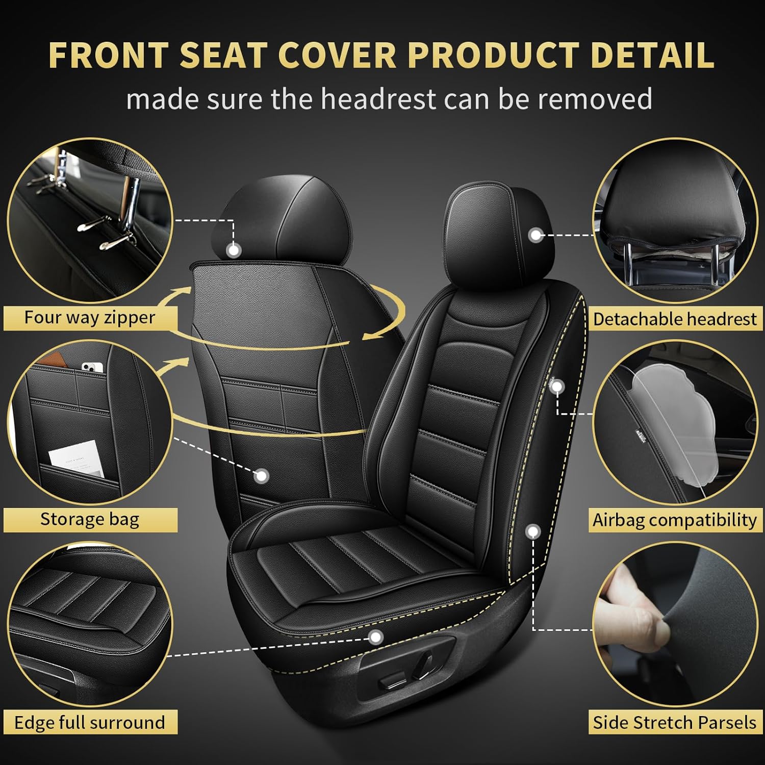 - 【New Upgrade】Compared with other seats, our front seat covers is a 360 ° full coverage and 4 zippers design, making the entire seat covers more suitable for the original seat.Back of the front seat cover is designed with 3 pockets for storing books, snacks, tissues, etc