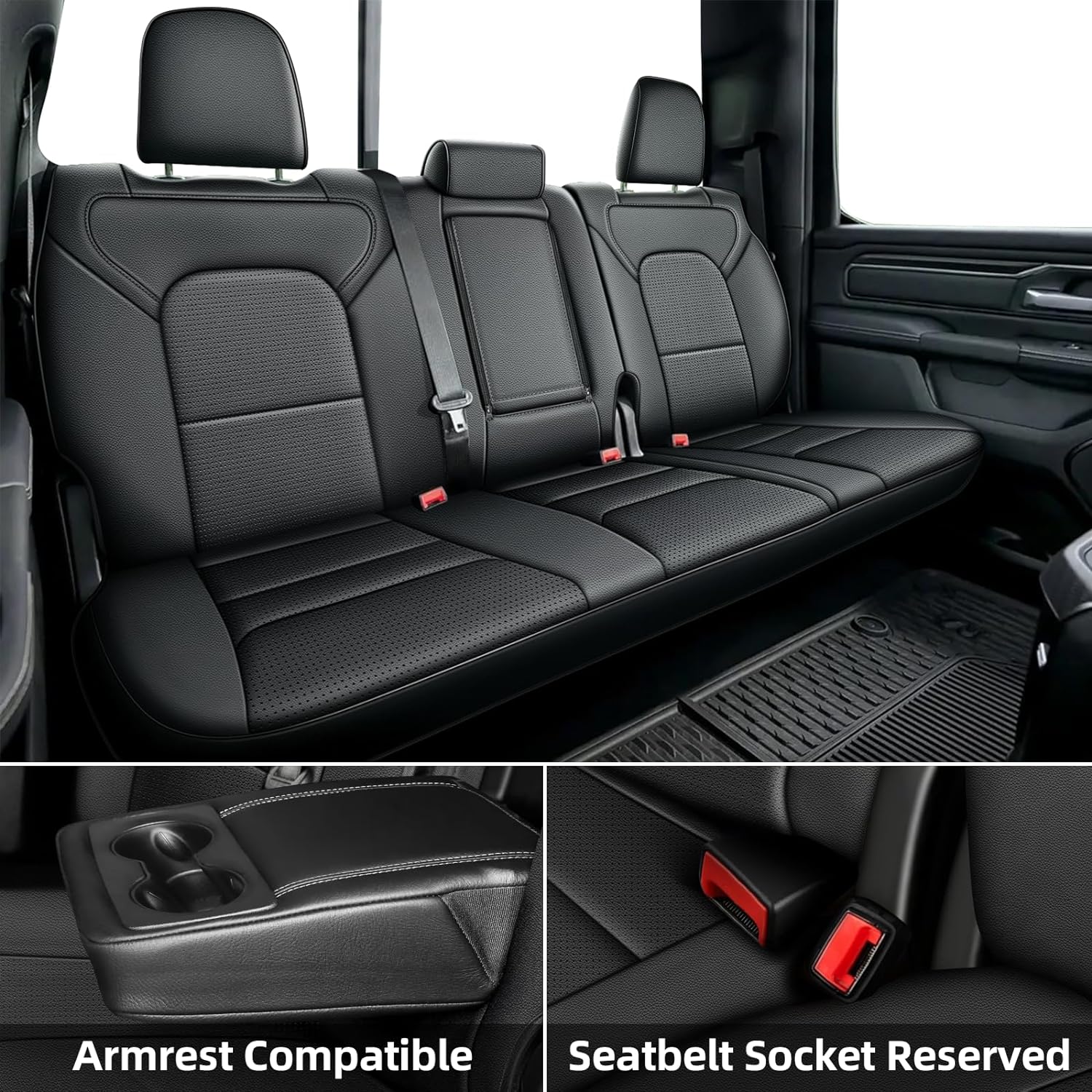 - CUSTOM FIT:These high quality seat covers for trucks perfect fit for RAM 1500 2019 2020 2021 2022 2023 2024 2025 Crew Cab(Front covers only fit bucket seatsback seat 40/60 separate,pls look at pic4), we sure that every detail is considered.(Airbags,seat belts,child safety seats)