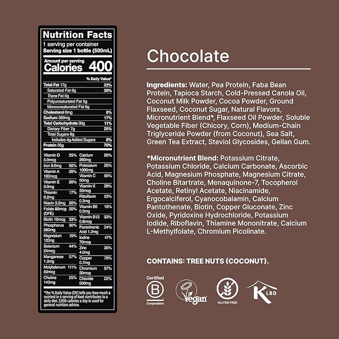 - EATING HEALTHY NEVER TASTED SO GOOD: Ready-to-drink is available in two delicious flavors, Vanilla and Chocolate. Each one containing real wholefood-sourced ingredients and zero artificial sweeteners.