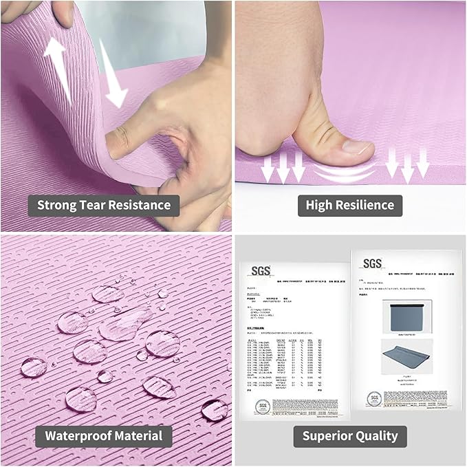 - Premium TPE Material: Our yoga mat is made from SGS certified TPE material which is healthy, odorless, eco-friendly and recyclable. It has a long lifespan which features high resilience, good tear and abrasion resistance, unlike those traditional PVC and NBR materials.