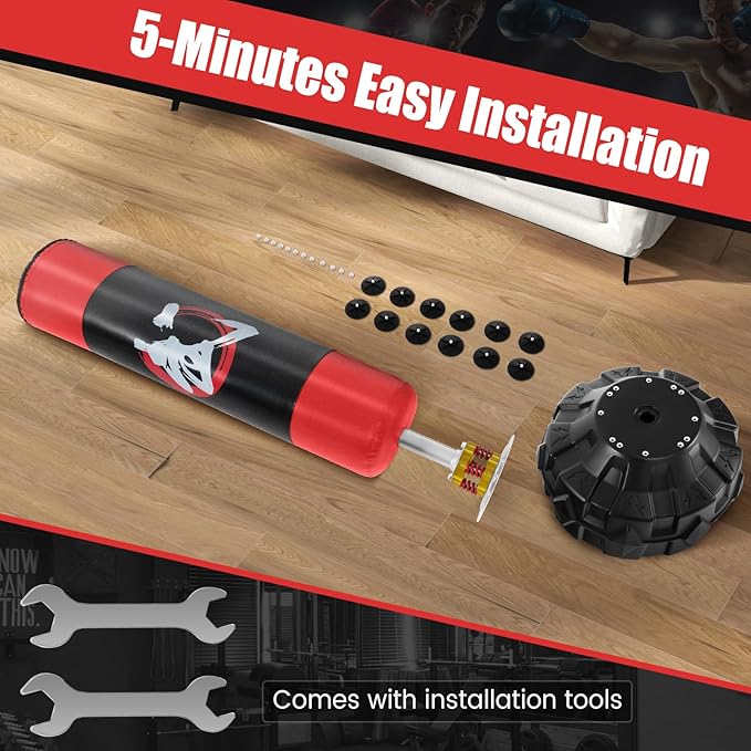 - 【Pre-filled Bag】GYMAX punching bag is prefilled, and you could start your exercise ASAP you get it. Multi-layer construction of the bag offer you touch-friendly punching, quick rebound and shock-absorbing effect.