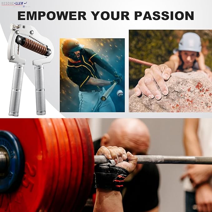 - 【Adjustable Grip Strength Trainer】: The NESOHC-LLEW brand offers a grip strength trainer with adjustable resistance, ranging from 55 lbs to 264 lbs, catering to varying fitness levels.