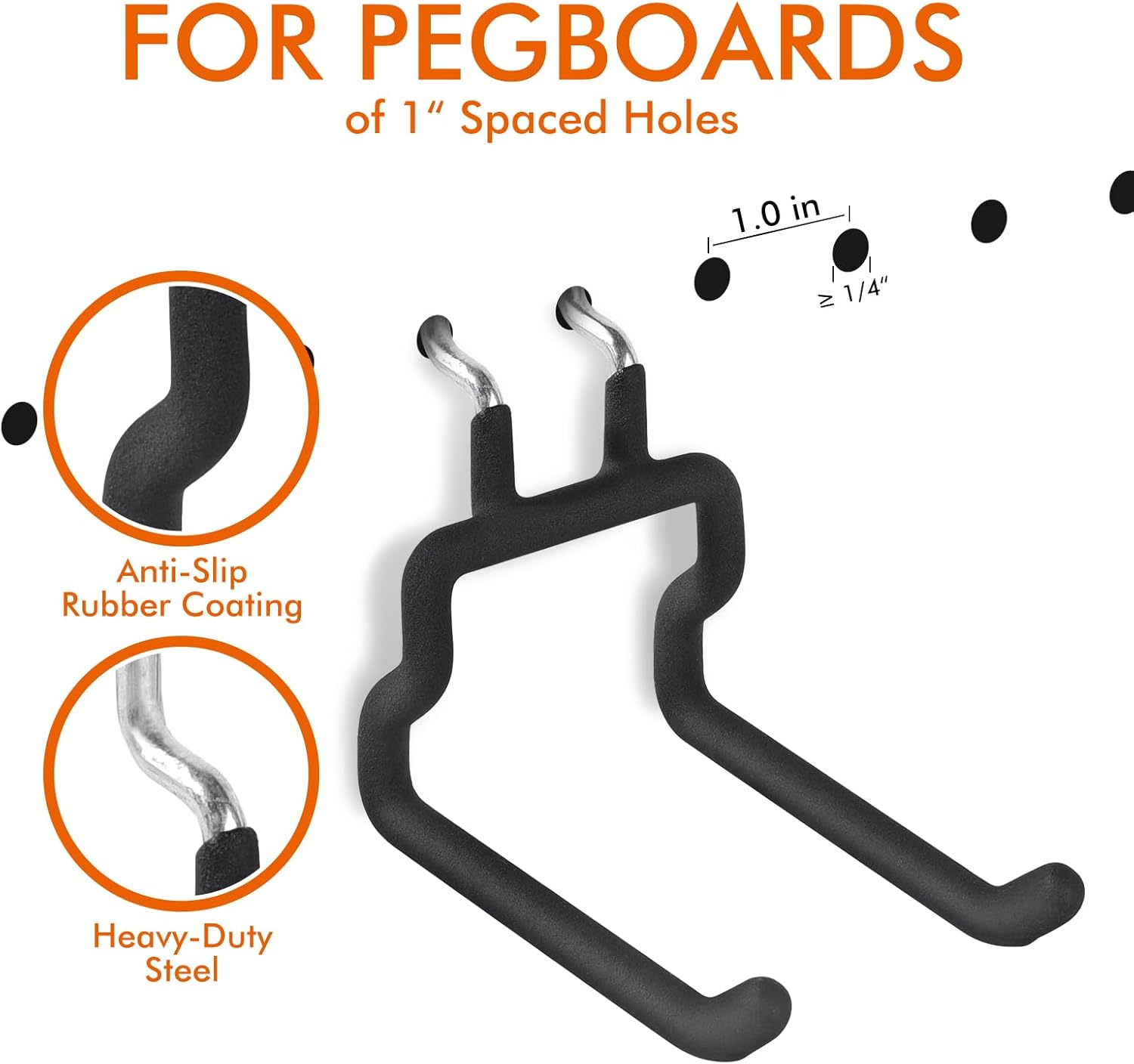 - Universal Pegboard Accessories: Fits 1/4-inch pegboards with 1-inch spacing. Two-pronged hanging design, no need for peg locks. Package includes 6 x dual arm utility hook, 2 x screwdriver 6-ring hook rack, 2 x combo tool 12-hook hanger.