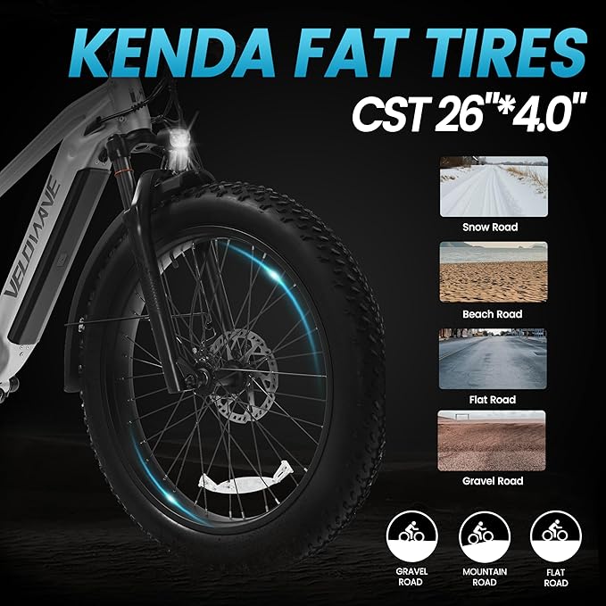 - 1200W Peak Powerful Motor with 3 Riding Modes】Our 750w (Peak 1200W) high-speed brushless rear motor provides strong power and is less prone to damage. Electric bike provides 3 riding modes: Pure electric mode, pedal-assist mode, classic bike mode. With a max speed of up to 28+MPH in pedal-assist mode; 20 MPH by throttle , combined with the Tender 26"x4.0" all-terrain fat tire, you can conquer all kinds of rough terrain, including snow, beach, rugged mountain roads, etc.