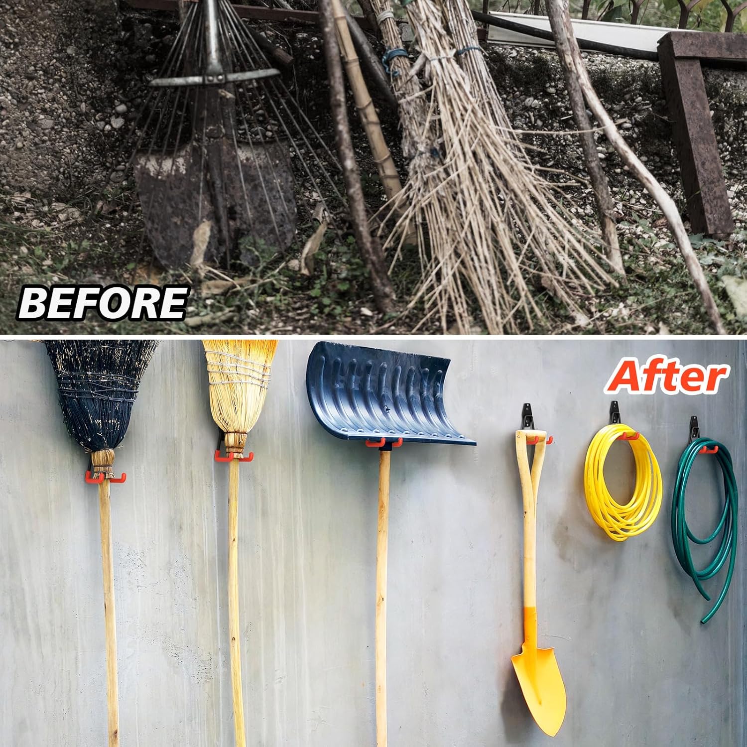 - MULTI-APPLICATION:The garage organizer hooks are ideal for storing and organizing a wide range of items, including ladders, garden tools, power tools, bikes.The Hooks can also be used in garages,workshop, shed, shop, warehouse, basement.Save more your storage space.Housewarming gift