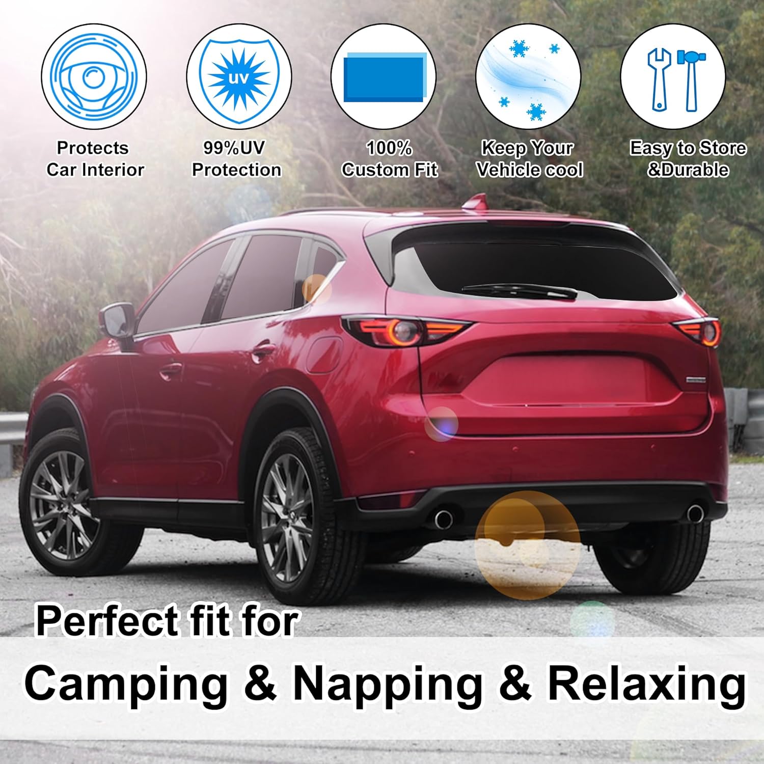 - Customized Design:The sun shade custom fit for Mazda CX-5 2017 2018 2019 2020 2021 2022 2023 2024 2025.Our window shade is according to the car size design,perfectly fit your car and does not need to trim.windshield sun shade solve the problem of light leakage and incompatibility of the old umbrellas.The sunshade designed for Mazda CX-5.