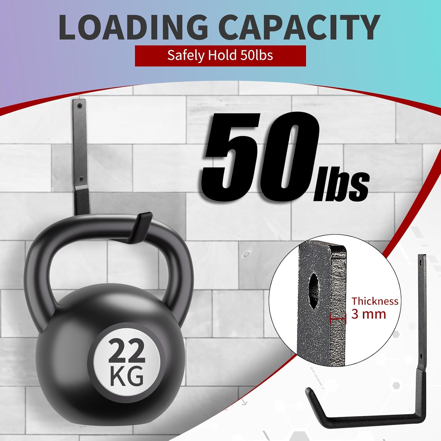 - VARIOUS FUNCTIONS - Our utility hook is a flexible wall mounting solution for bikes, cables,hoses, spade, broom, wrench, stroller, skates, gym bags, shovel, rakes, kayak, sports equipment, sawhorses, and electrical cords,gym bars, Body Training and core strength builders and other items.
