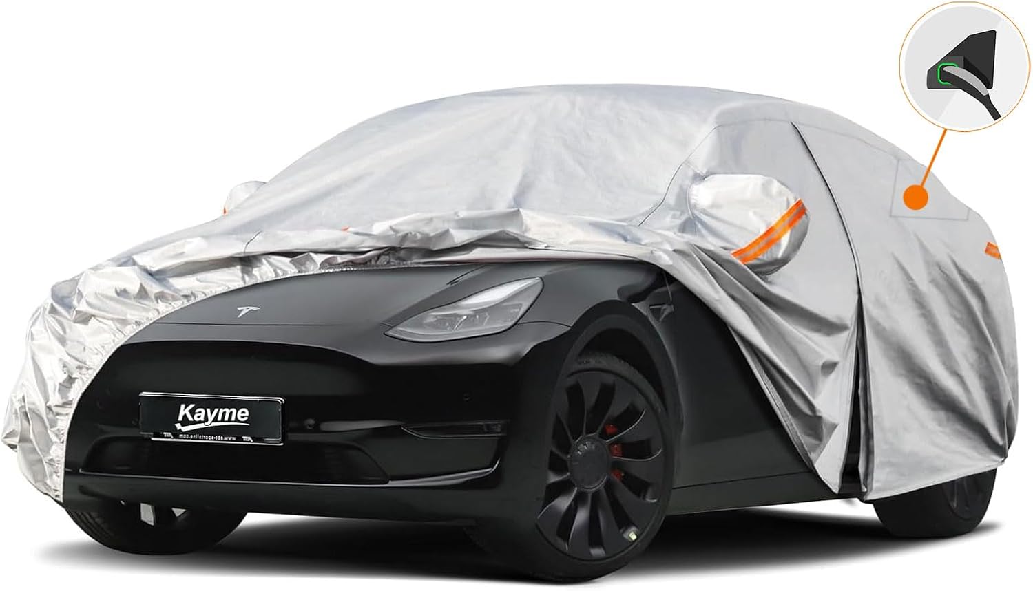 Kayme 6 Layers Car Cover Custom Fit for Tesla Model Y, Waterproof All Weather for Automobiles, Outdoor Full Car Cover Sun Rain UV Snow Protection.Silver