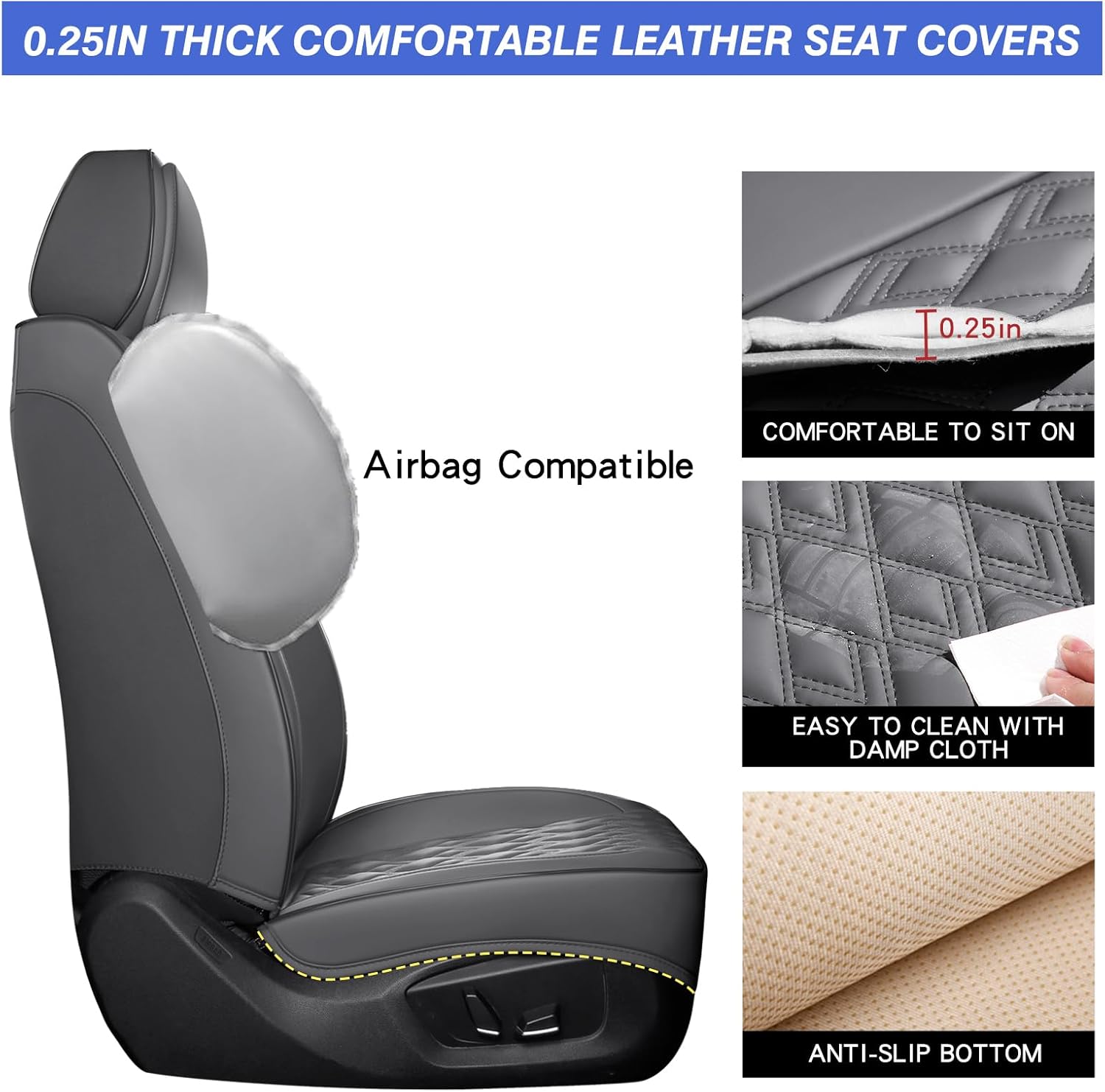 - ✨ULTIMATE SEAT PROTECTOON:Shield factory seats from scratches, UV rays, pet damage, and wear. Tough, fade-resistant synthetic leather preserves your car’s resale value while built-in airbag slots ensure 100% safety compatibility.