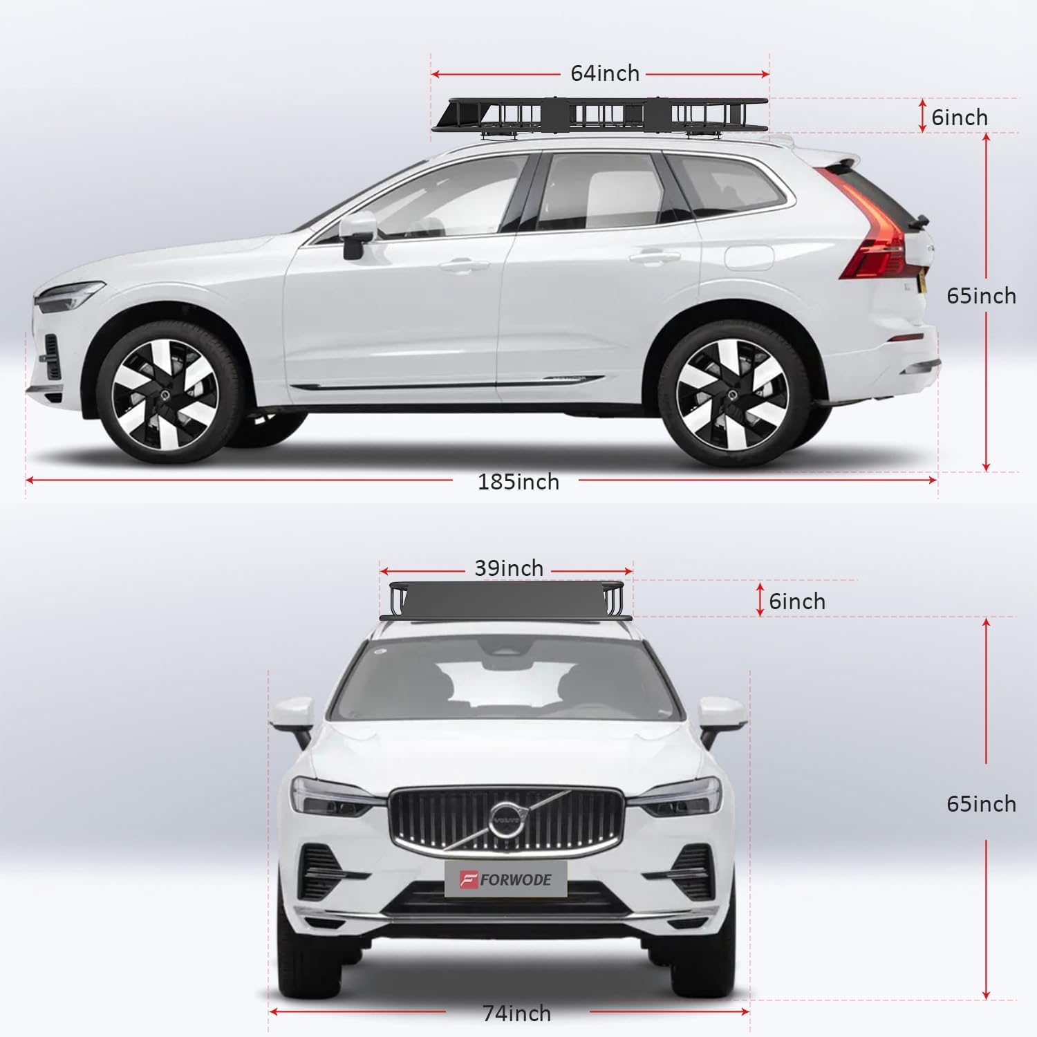 - Forwode Roof Basket - With overall dimensions of 64" x 39" x 6" and adjustable length (43 / 64 inches), it offers a robust 250lbs load capacity, ensuring super load-bearing performance to easily fit a family’s luggage.