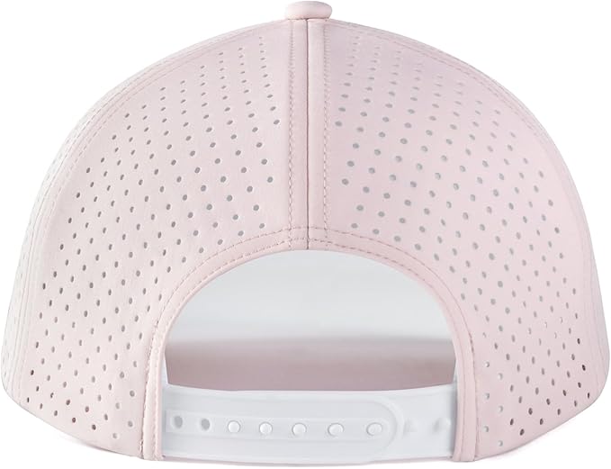 - Design: structured front panels, 6-panel cap, curved brim, laser-perforated side & rear panels for breathability, and soft touch snapback closure