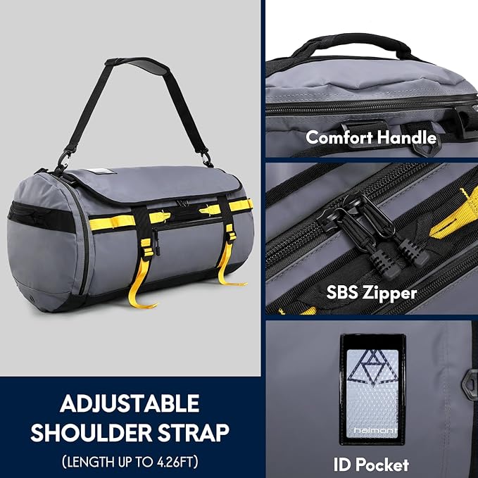 Haimont Large Duffle Bag Backpack for Travel, Men Women Duffel Backpack Bags with Shoes Compartment for Camping, Traveling, Sports, Trip, Water-resistant, 60L Grey