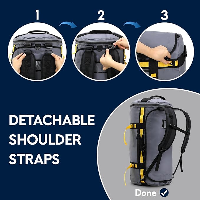 - 3-IN-1 CONVERTIBLE DUFFLE BACKPACK: The Haimont duffle bag quickly converts to a travel duffle backpack that comes with removable shoulder straps, an adjustable chest strap. The exterior of the bag is equipped with 4 side soft carry handles which offers a variety of carrying options. It is easy to convert and reduce the burden of traveling