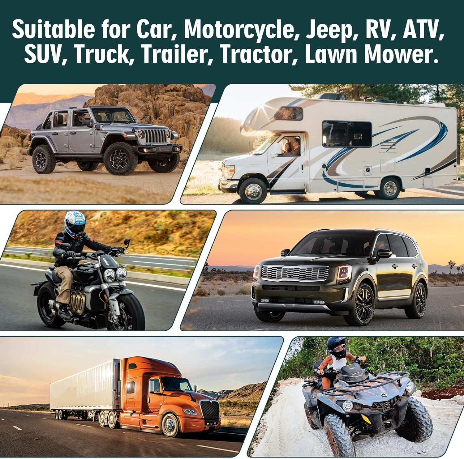 - UNIVERSAL FIT: Compatible with cars, jeeps, trucks, SUV, ATV, motorcycles, tractors, lawn mowers, toy haulers, trailers and more.