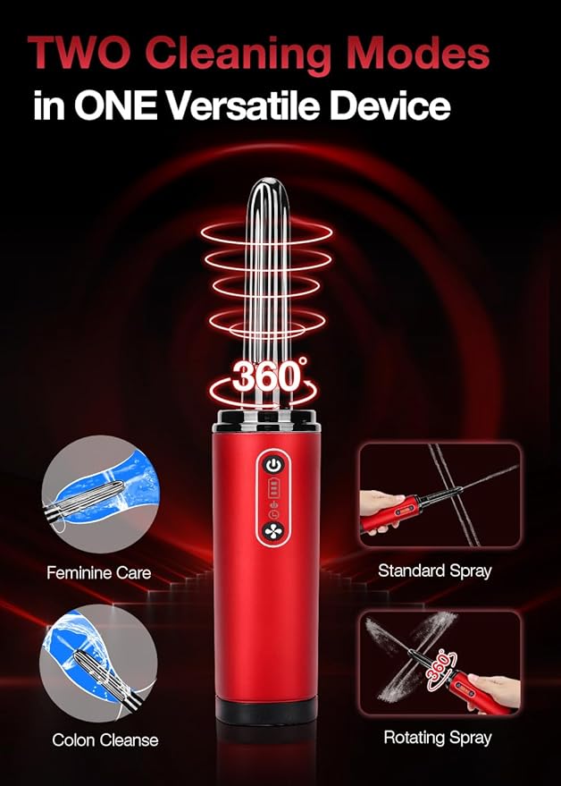 - [Versatile and Easy to Use]: This anal douche features both a 5-hole spray mode and a rotating spray mode, allowing you to switch modes anytime as needed. It serves as an efficient douche for women, douches for men, and enemas for colon cleanse for women and men.