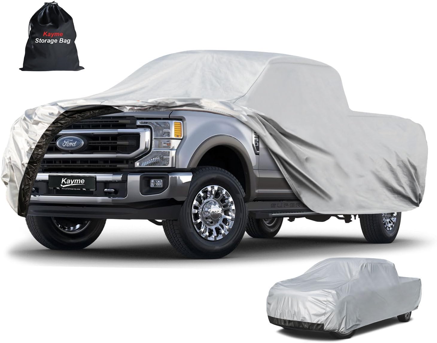 - 【Premium Material】- Kayme 6 layer pickup cover is made of heavy duty material. 1 PE&PEVA is 100% waterproof, It's great for rainproof snowproofing. 2 High reflective aluminum is good at sunproof and anti-uv, Keep the car cool in the summer. 3 Thicker and soft cotton will protect vehicle paint. Kayme multi-layer material is much thicker and more durable than other similar products.
