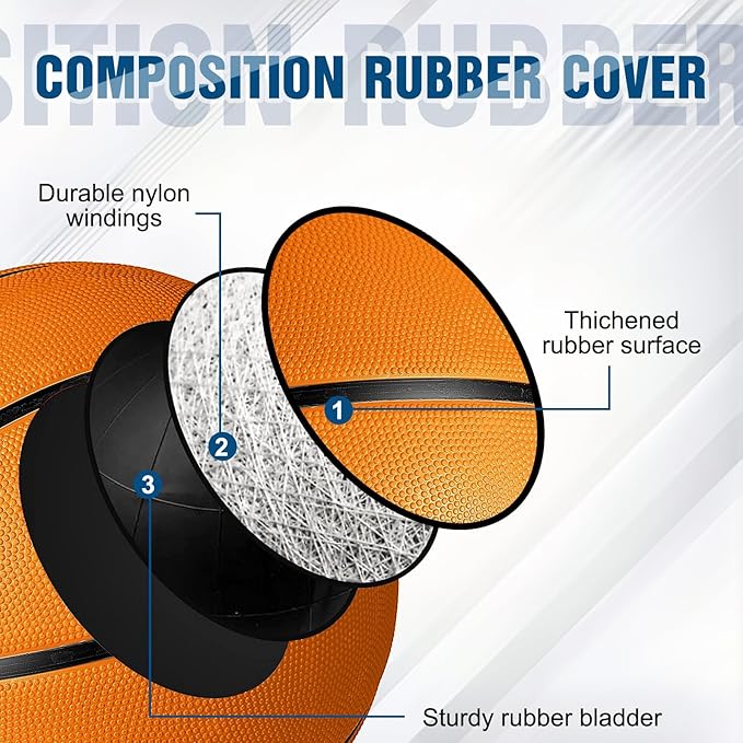- Fine Touch and Control: the indoor basketballs are made from reliable rubber, wear resistant and soft; Each ball is equipped with a yarn wound bladder as standard, not easy to leak; The ball surface has small grains and deep channels, which provide better grip and good bounce passes; Quality material brings you the fine touch
