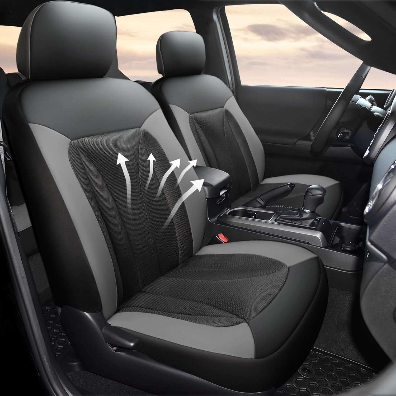 GIANT PANDA 2-Pack Front Mesh Car Seat Covers Custom Fit Toyota Tacoma 2016 2017 2018 2019 2020 2021 2022 2023 2024 2025 Double & Crew Cab SR, SR5, Limited, TRD Pro, TRD Sport, TRD Off-Road(Grey/Gray)
