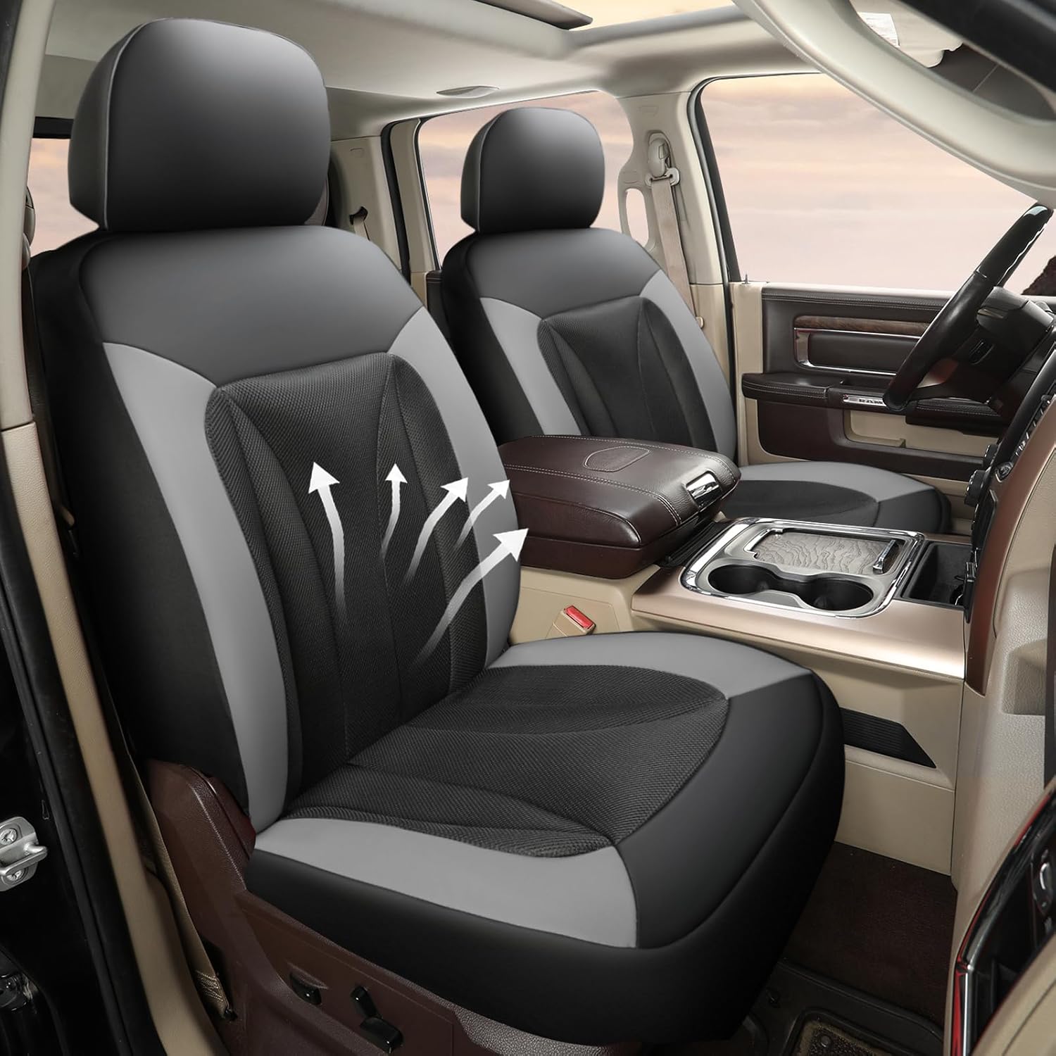 GIANT PANDA 2-Pack Front 3D Air Mesh Car Seat Covers Custom Fit Dodge Ram 1500 2500 3500 Trucks Seat Protectors with Composite Sponge Inside Breathable Automotive Interior Covers(Grey/Gray)