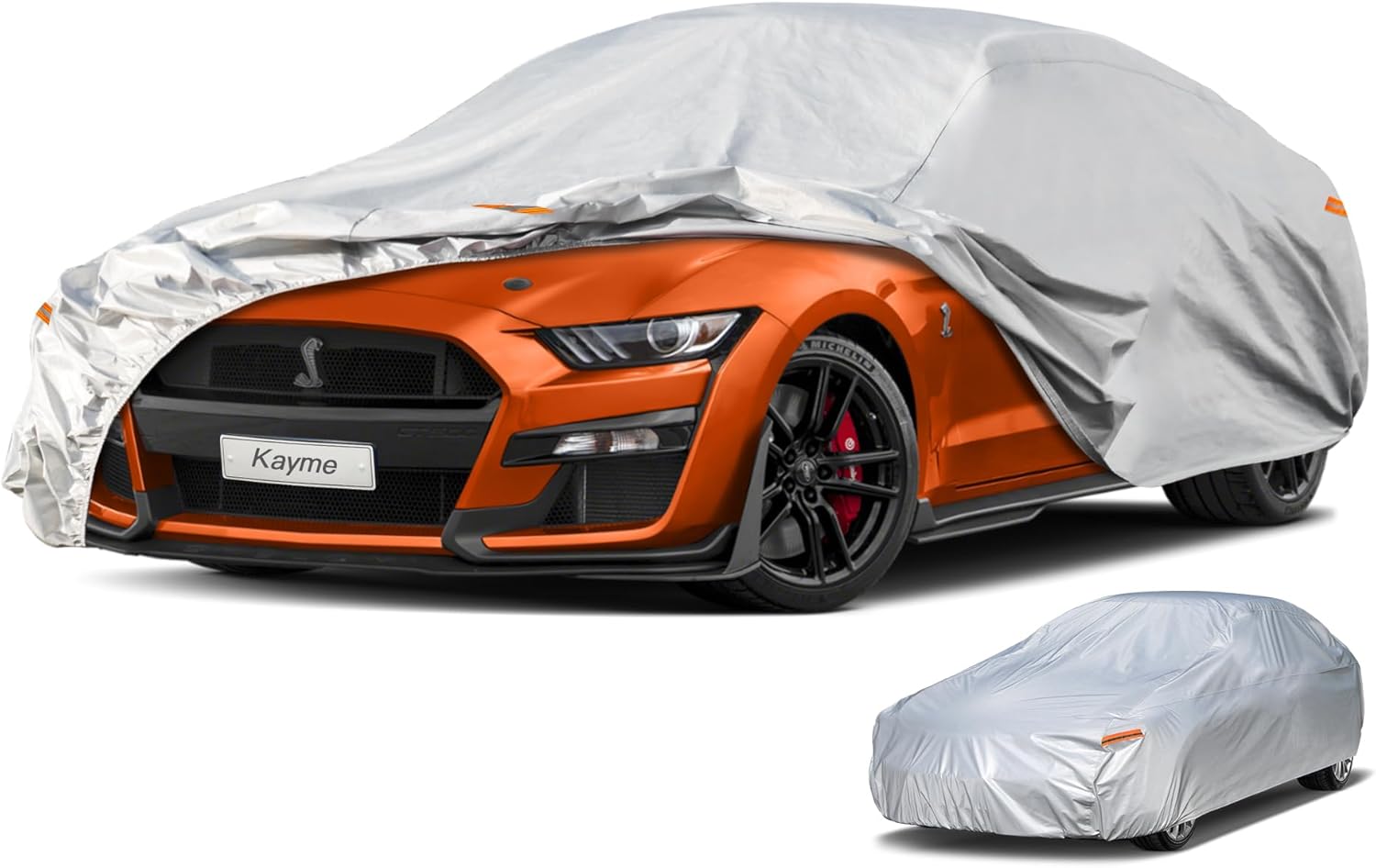 Kayme 6 Layers Car Cover Waterproof All Weather for Automobiles, Outdoor Full Cover Sun UV Snow Protection, Universal Fit for Ford Shelby, Chevy Camaro/Corvette, Lexus RC LC, Etc. (186-193 inch).