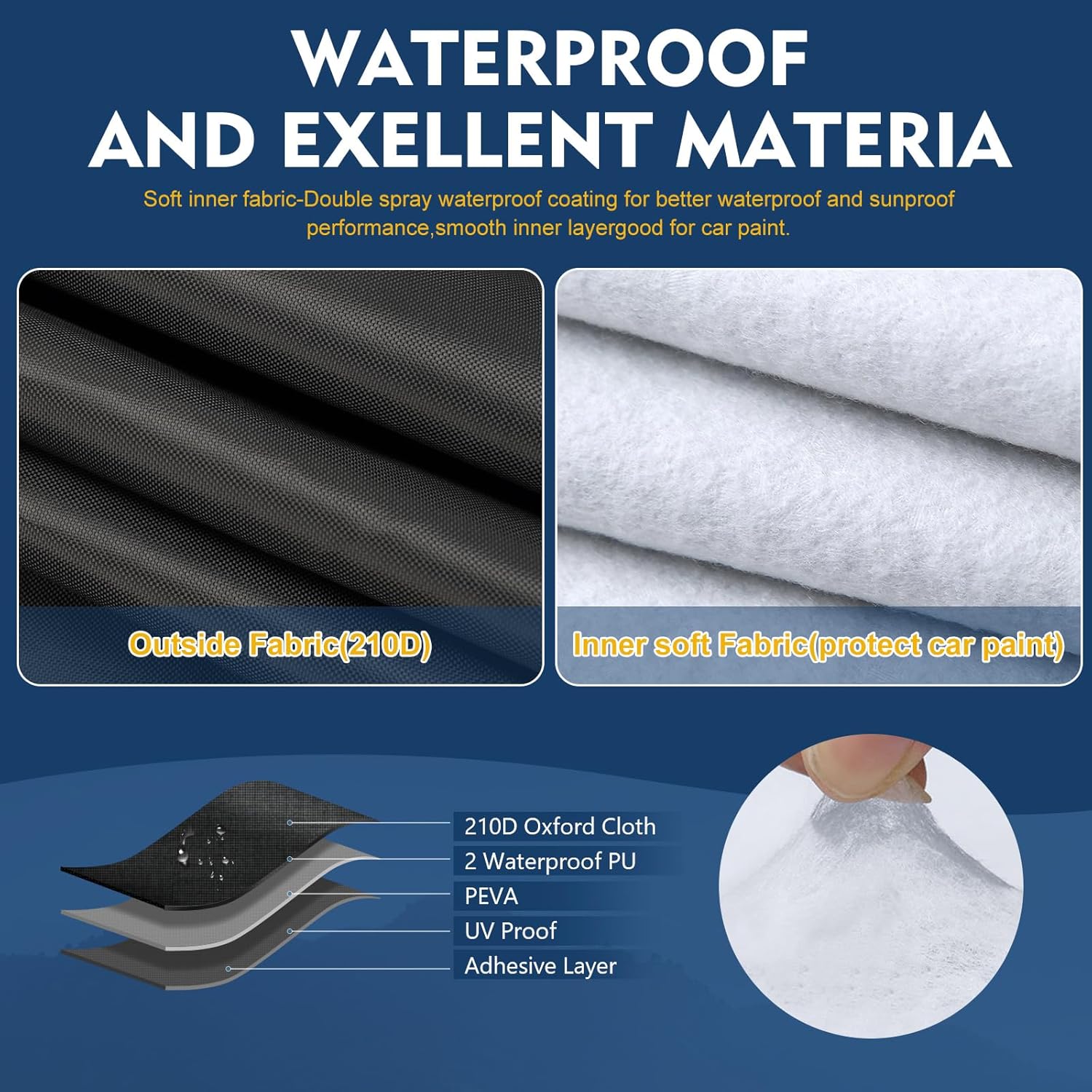 - 【6 Layers Superior Material】Made of High reflective black spray coating, waterproof black coated layer, 210D oxford fabric, Composite layer, black waterproof coating, soft lint layer. With 2000 water pressure for waterproof! Will NOT cause damage to your car!