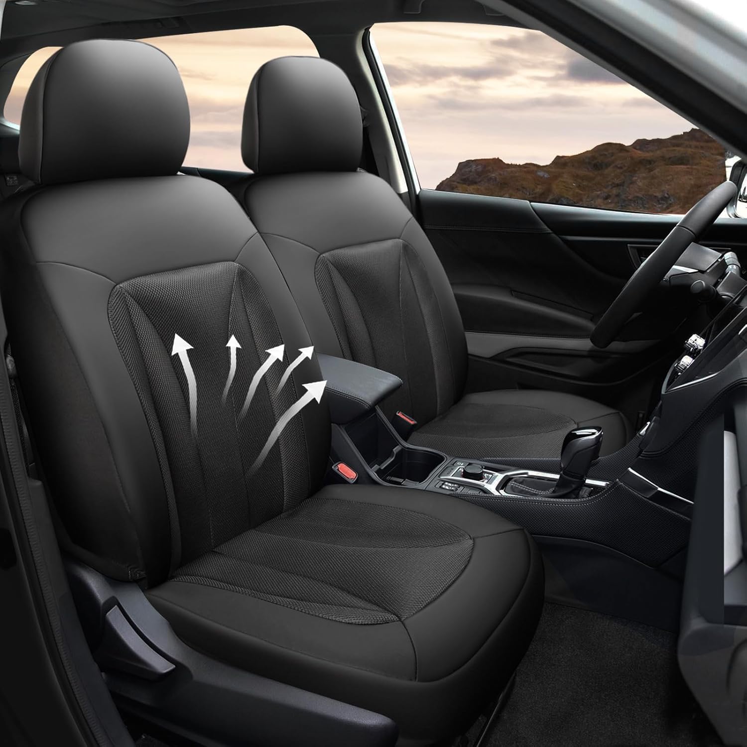 GIANT PANDA Fit Subaru Outback Forester Crosstrek Legacy Impreza Front Car Seat Cover, 3D Air Mesh Breathable Seat Protector, Black(2-Pack