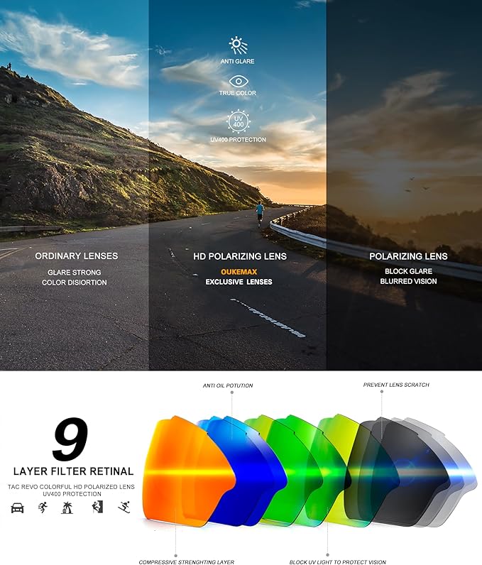 - Sport Sunglasses Men: Designed to meet the needs of outdoor enthusiasts, the OUKEMAX polarized sunglasses men offer superior clarity, protection and comfort. Sports sunglasses are perfect for running, cycling, fishing or any outdoor activity where you may encounter glare problems.