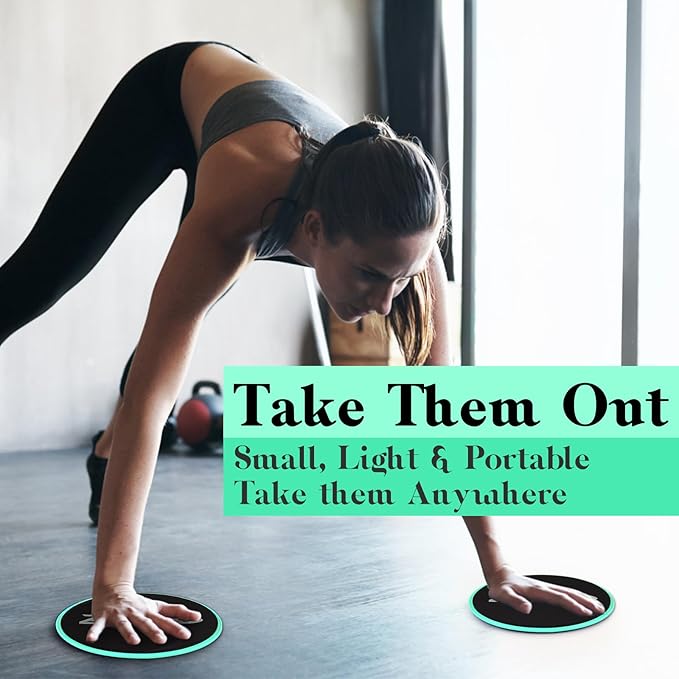 - ON-THE-GO: 2 pack green fitness sliders measures 6.9" in diameter and 2.89oz in weight, making them easy to carry. Even on the road, you can exercise anywhere.