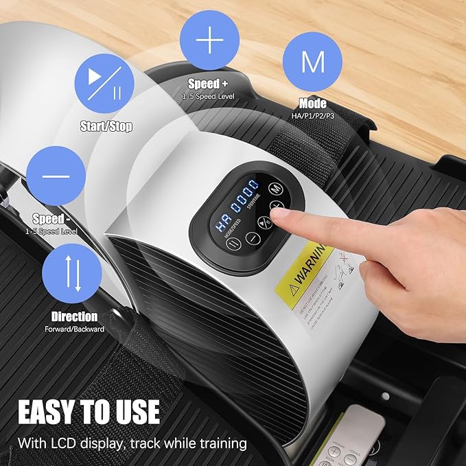- 【Versatile and User-Friendly】ANCHEER ellipse leg exerciser offers multiple workout modes while sitting. In HA mode, you can manually adjust the direction (forward and reverse) and speed (1-5 levels) using the remote control. The P1/P2/P3 modes come with pre-set programs, that automatically adjust the running speed and direction. Please do not stand on the foot pedal exercise machine.
