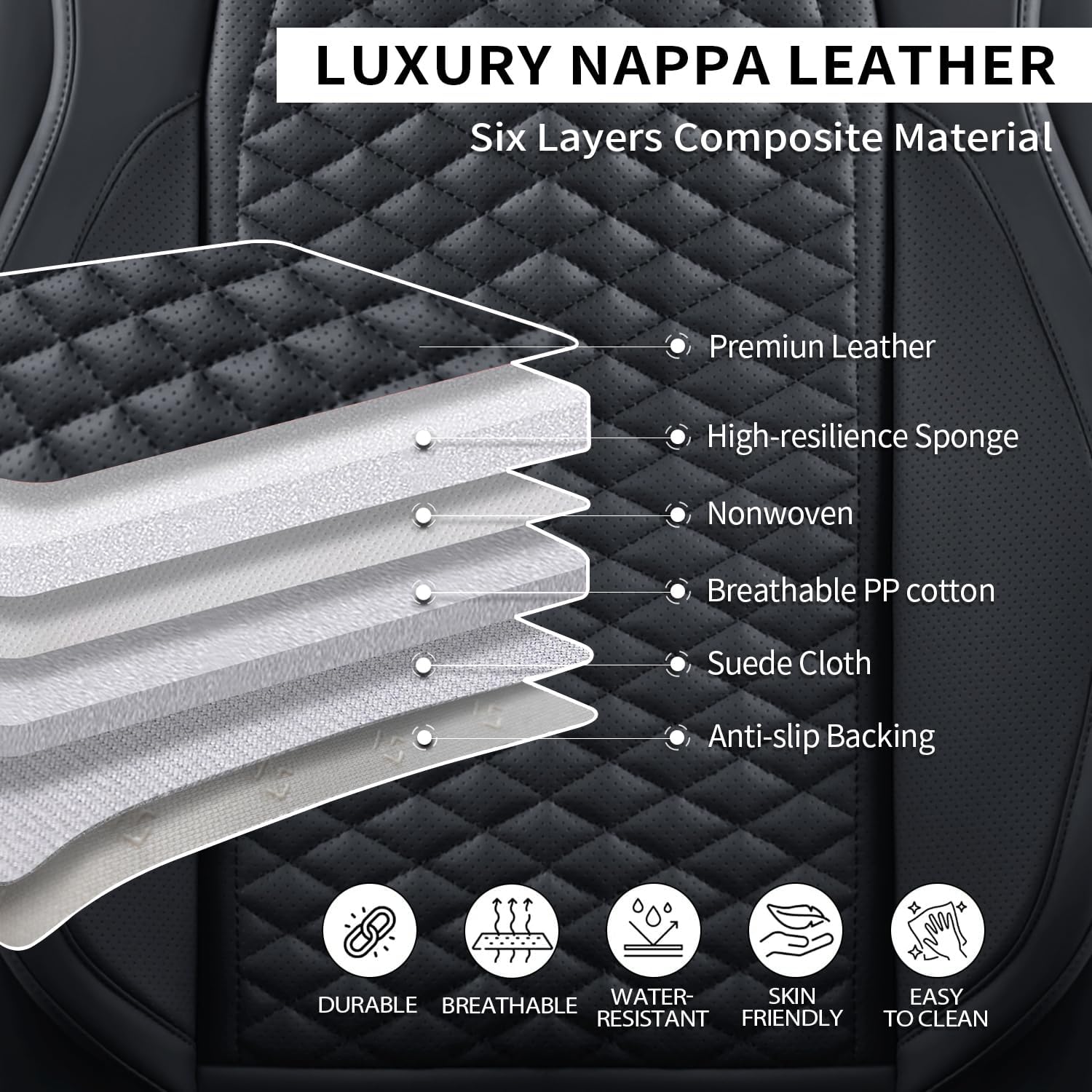 - AIRBAG COMPATIBLE: Leather front car seat covers reserve enough space for the airbags, which will not affect the airbags popping out in emergency situations, safe and reliable.