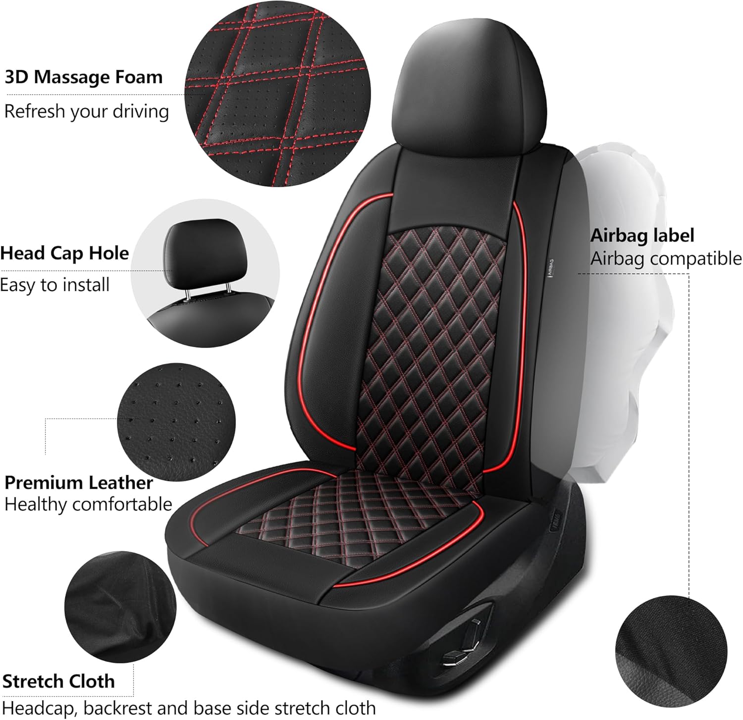 Leather Car Seat Covers,Breathable and Waterproof Napa Leather Automotive Seat Cover,Universal Interior for Cars,Sedans,SUVs,Vans,Trucks(Front Seat,Black+Red,N3)