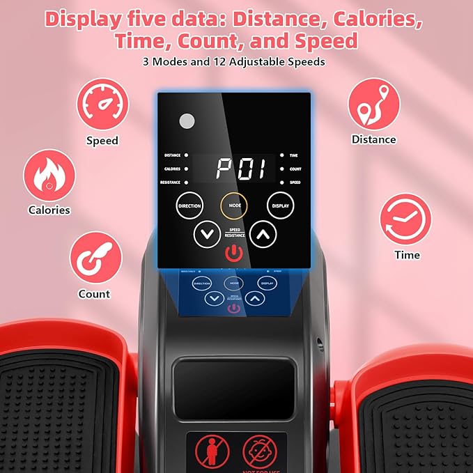 - 【Remote Control and LCD Display】The seated foot pedal exerciser comes with a remote control, allowing you to adjust settings without bending over, protecting your waist and back. The LCD screen displays real-time data on distance, time, calories burned, steps, speed, and resistance.