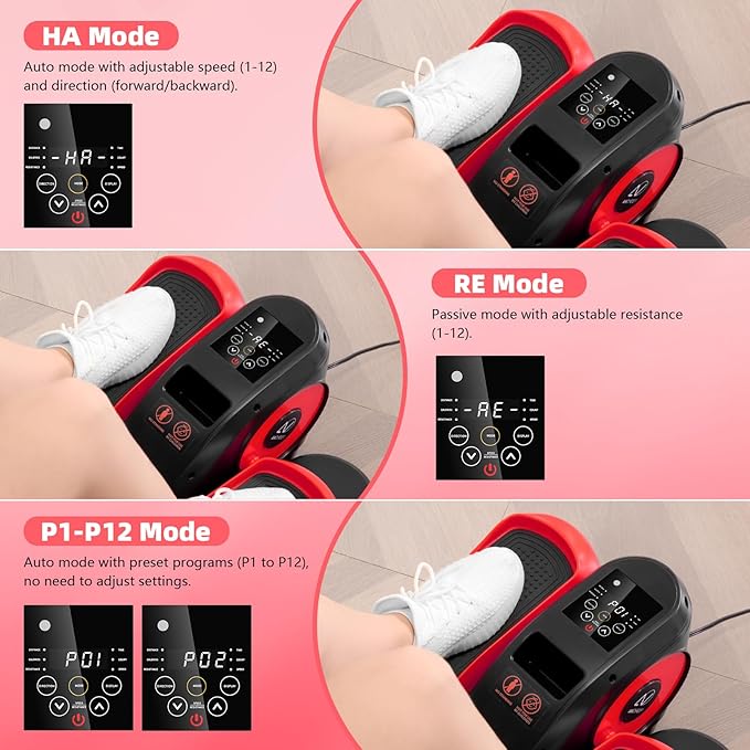 - 【3-in-1 Mode】The ANCHEER leg exerciser while sitting offers HA Mode (12-level speed and direction), HR Mode 12-level resistance, and Auto mode P1-P12 for you to choose from. The pedals can move forward or backward to target different muscle groups. Note: This device is intended for seated use only.