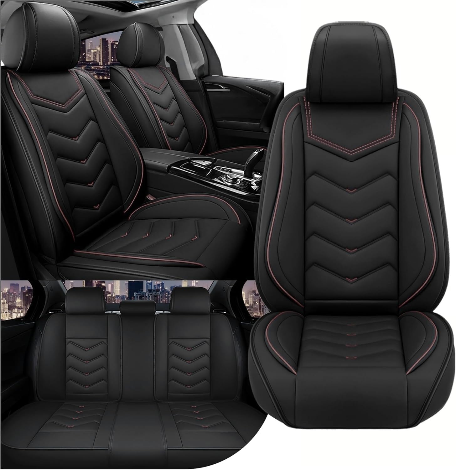 Car Seat Covers for Chrysler Pacifica 2004-2025, Stylish Sport Seat Cover, Premium Nappa Leather Car Seat Cover. Automobile Seat Covers Sets.(Standard 5 Seats/Black)