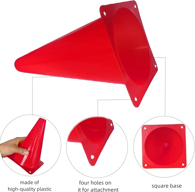 - Versatile: Set of 24 plastic red traffic cones, 7 inches tall, ideal for various sports drills, training exercises, and festive events.